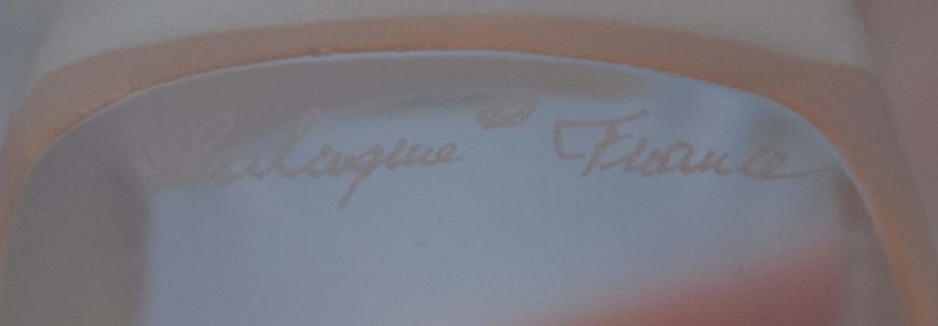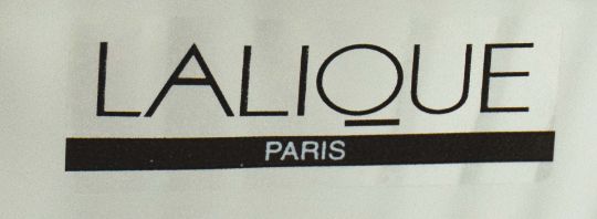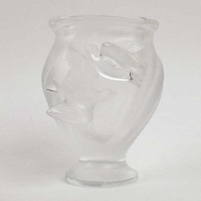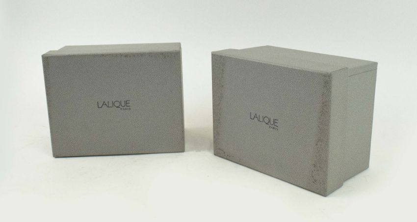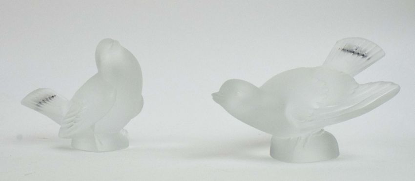 LALIQUE GLASS. TWO BOXED SPARROW FIGURES AND A ROSINE VASE (3). vase 13cm H.
