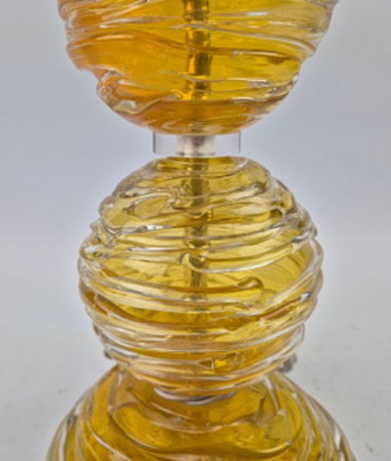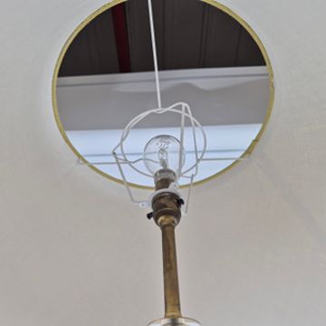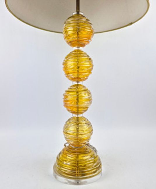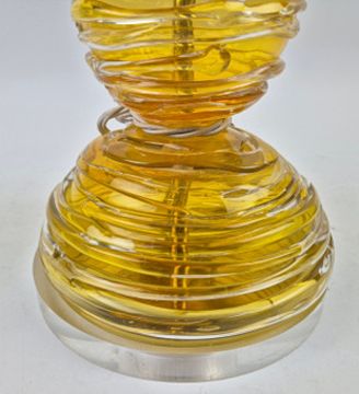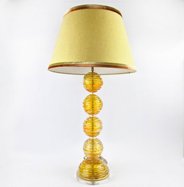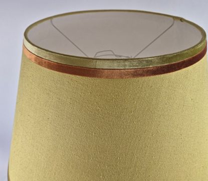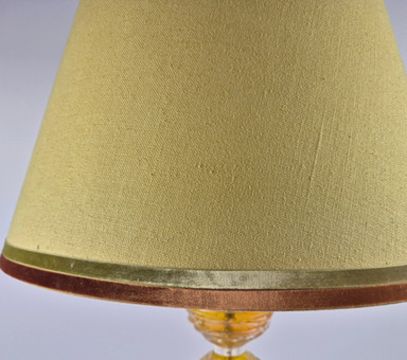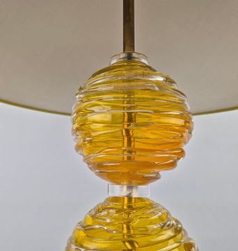 WILLIAM YEOWARD ELFREDA TABLE LAMP. with mustard shade, 95cm high, 51cm diameter at shade.