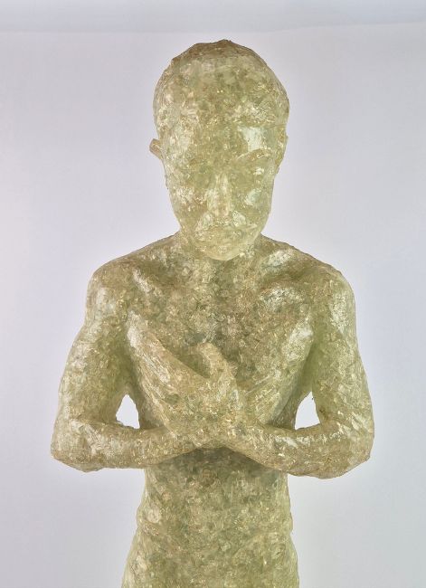 STEPHEN YEATES. STANDING MALE FIGURE. Glass and resin, 88cms High.