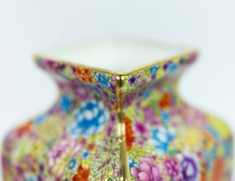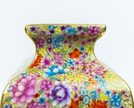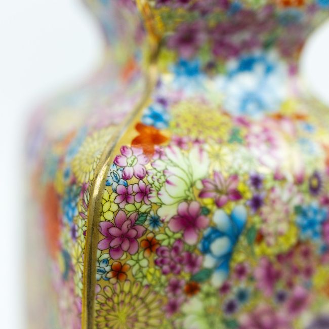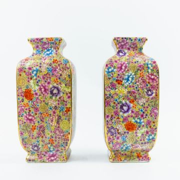 PAIR OF CHINESE PINK FLORAL CERAMIC VASES. 25cm H x 12cm W.