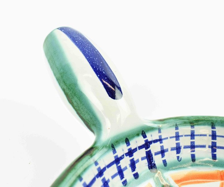 ROBERT PICAULT (1919-2000). Poêlon. Ceramic, polychrome decorated 18cms diameter, 25cms wide with handle.