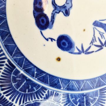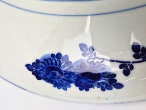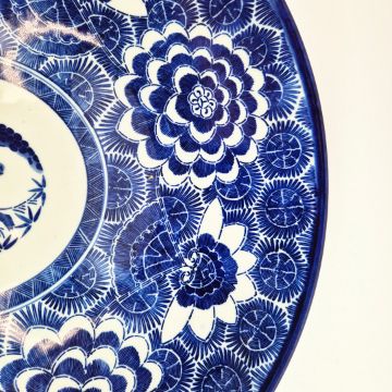 A JAPANESE CHARGER. in blue and white. 46cm.