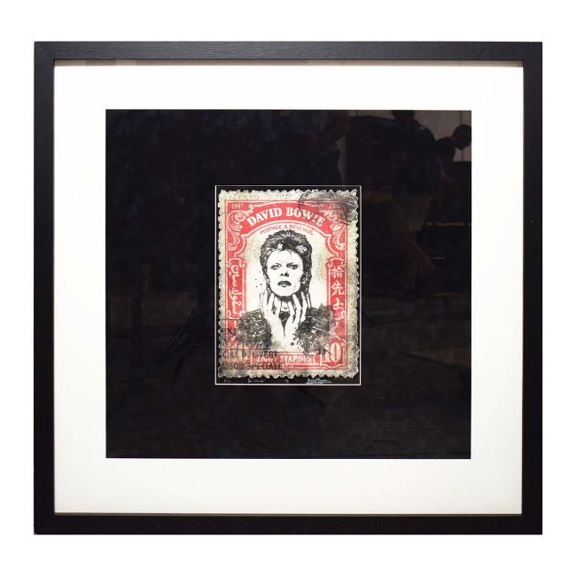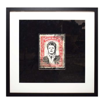 MATT J. ADAMS. "BOWIE". Hand embellished etching, stamp aged in whiskey, rum and cigarette ash, signed, numbered and titled, framed, mounted and glazed, 39 cm H x 23 cm W (103 cm H x 103 cm W, framed).