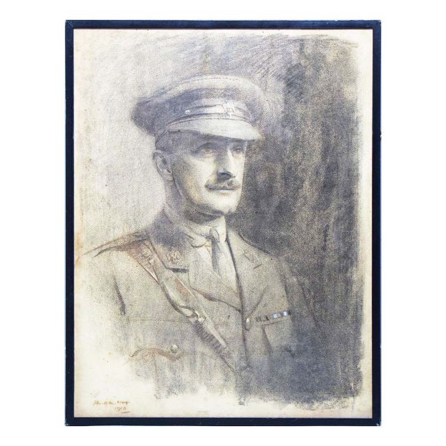 PORTRAIT OF MAJOR JOHN McNEICE (2). Coldstream guards, signed Hay 1918 and another army officer portrait be the same hand 36cm x 28cm and 61cm x 46cm (2).