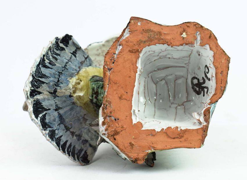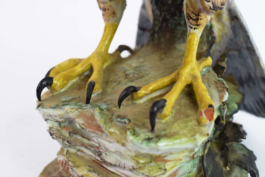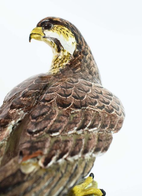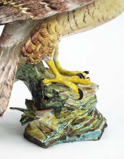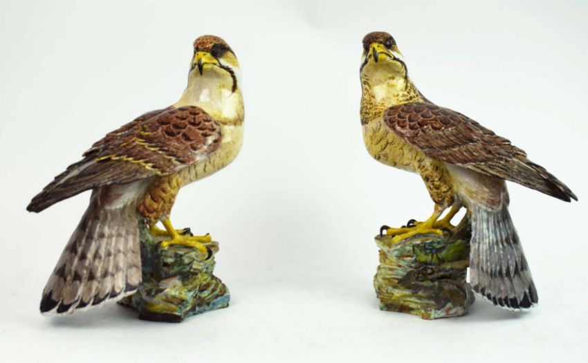 LADY ANNE GORDON (1924-2007). A PAIR OF CERAMIC FALCONS (2). (d) 23cm H. Provenance: Gurney's Manor, Hingham, Norfolk. (Subject to ARR - see Buyers Conditions).