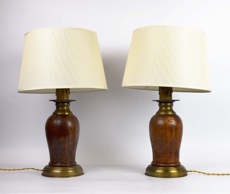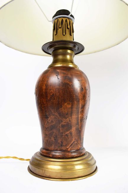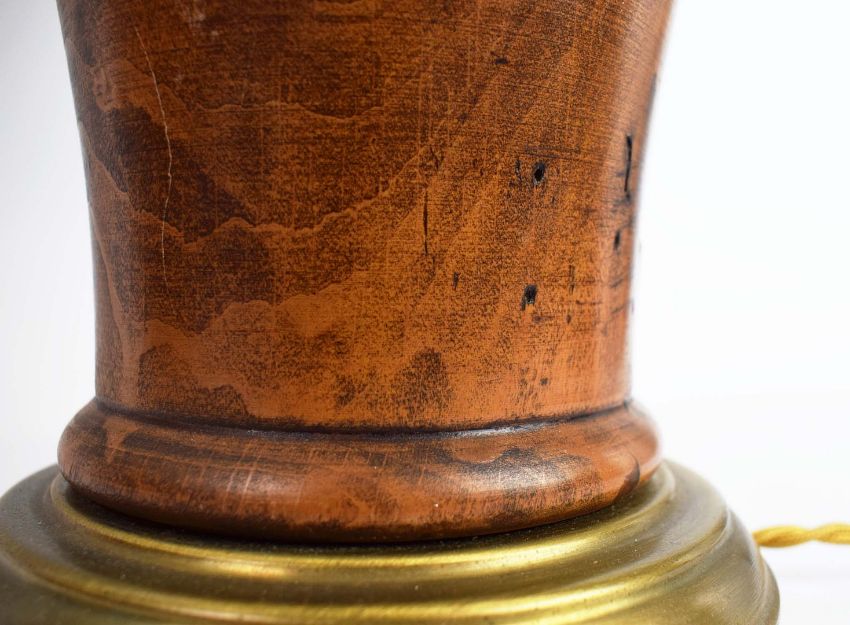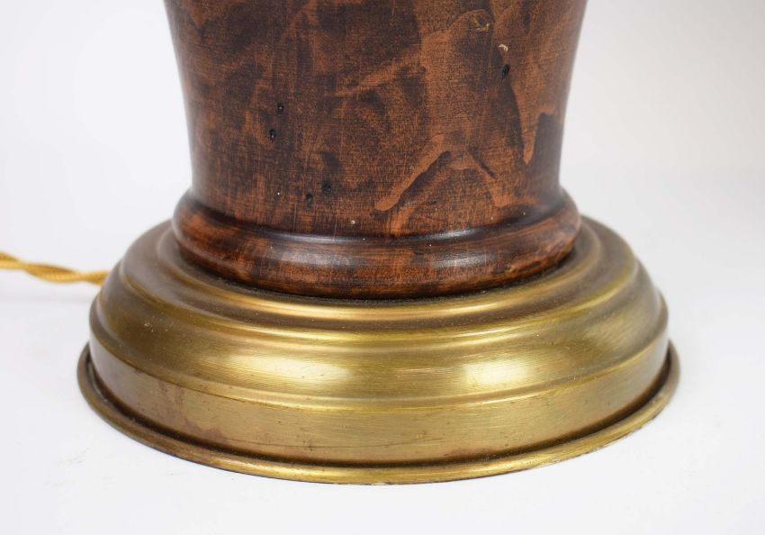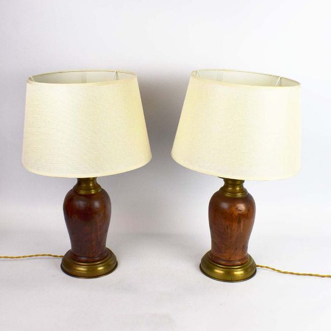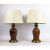 PAIR OF MID 20th CENTURY ITALIAN WALNUT AND BRASS TABLE LAMPS. With shades56cm H x 35cm W.