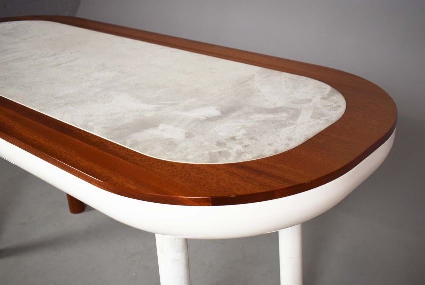 DRESSING TABLE. contemporary design, alcantara upholstered top, with a drawer, 160cm x 70cm x 76cm approx.