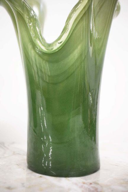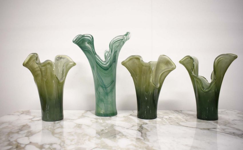 MURANO STYLE VASES, A COLLECTION OF FOUR. 3 in 1 shade of green and 1 in another, 42.5cm H at tallest approx. (4).