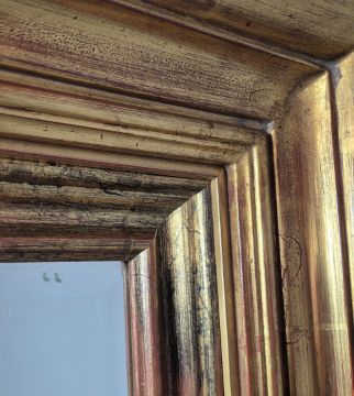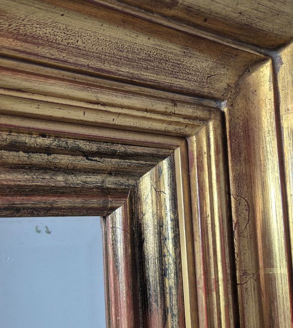 OVERMANTEL MIRROR. with a gilt frame, 131cm t x 153cm w.