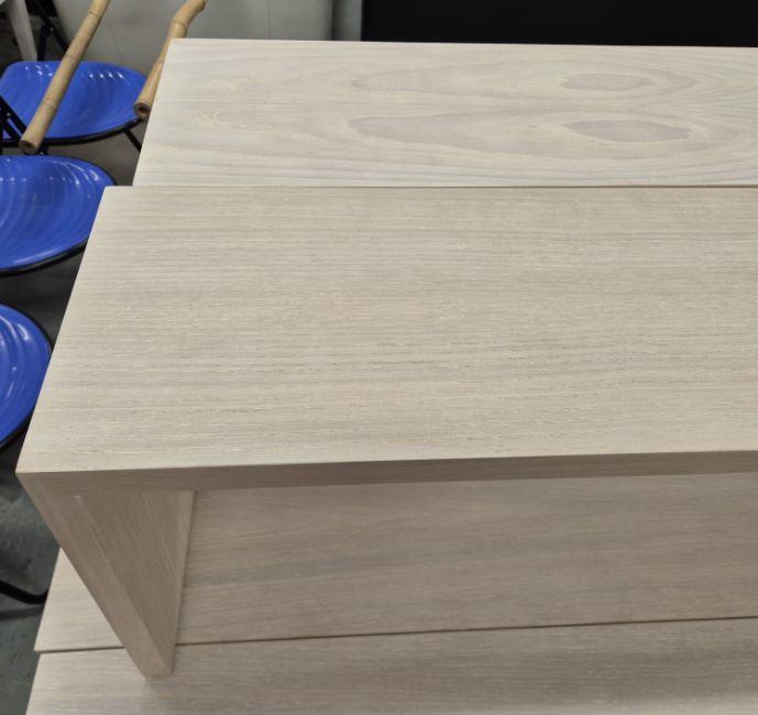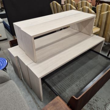 BENCH SEATS, A SET OF 5. hidden wheels to base, 164cm x 30cm x 65cm at largest each approx. (5).