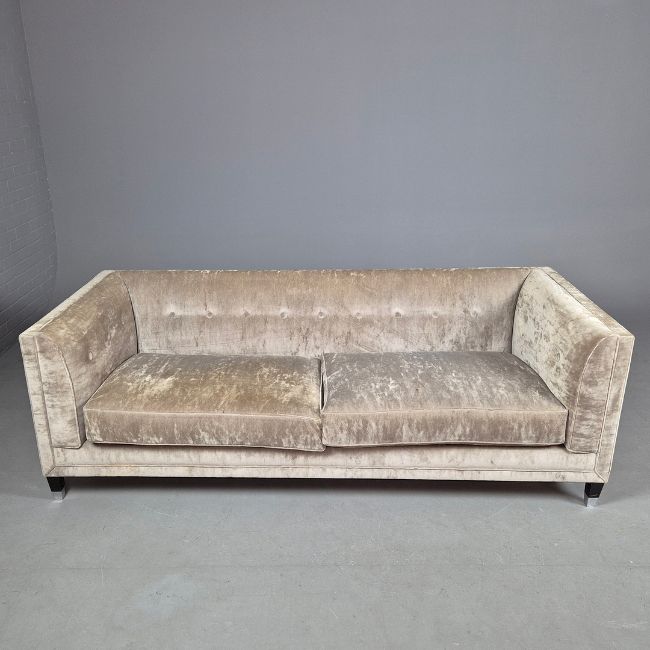 SOFA. sand coloured velvet upholstery, 220cm W approx.