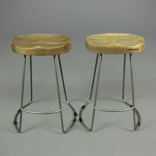 STOOLS, A SET OF SIX (6). from French Connection, with wooden seats and metal bases, each 60cm t.