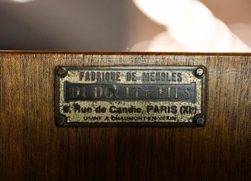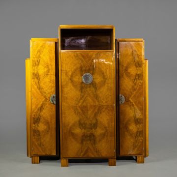 DUDOUIT ET FILS WARDROBE, LATER CONVERTED WITH SHELVES. Art Deco French walnut, circa 1930. 178cm H x 172cm w x 37cm D.