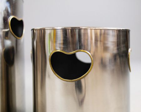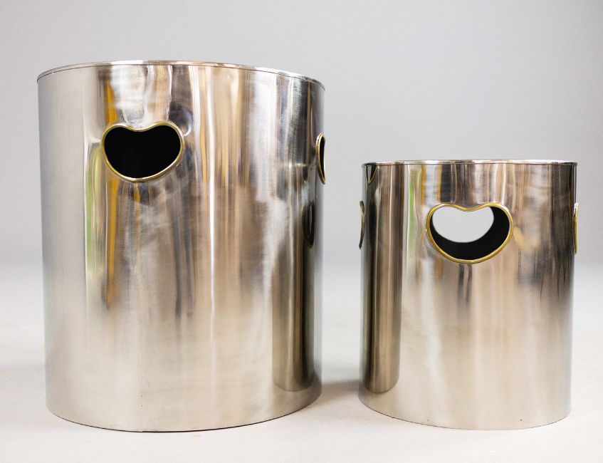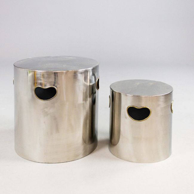 AURA LONDON NESTING DRUM TABLES, A GRADUATED PAIR. (2). 50.5cm diam. x 55cm H approx. (2).
