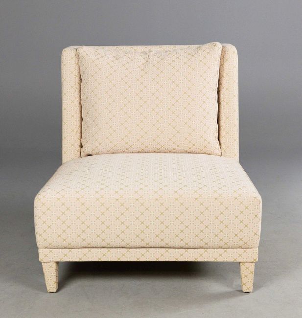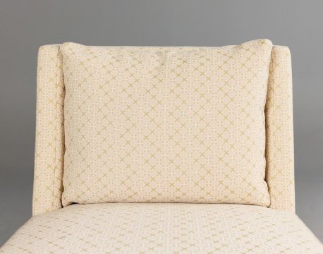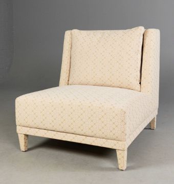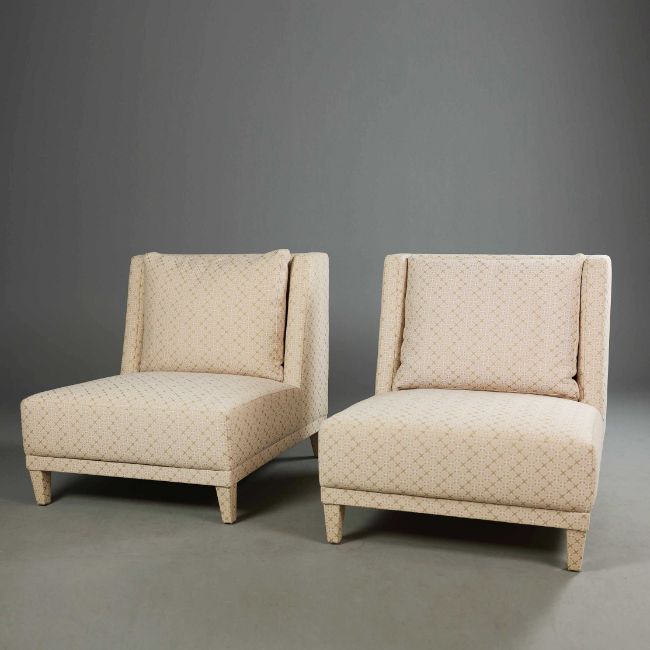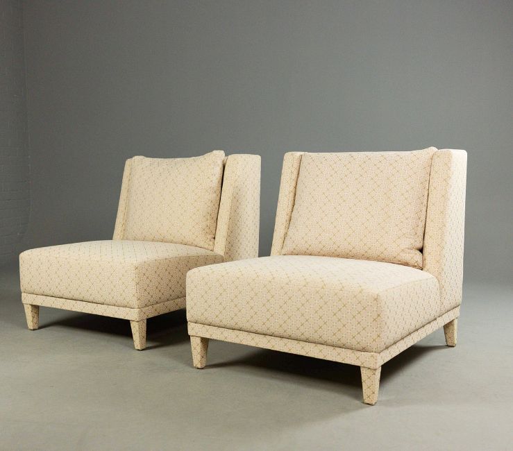 LOUNGE CHAIRS, A PAIR. pink patterned fabric upholstered, 80cm W approx. (2).
