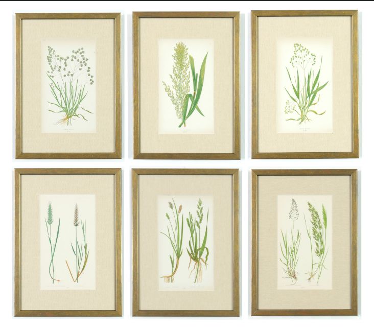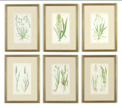 E J LOWE. A SET OF SIX HAND COLOURED GRASSES. 1864, 23.5cm x 14cm each.