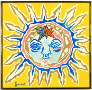 JEAN LURCAT. YELLOW SUNBURST ON SILK. (d) signed in the plate, 64cm x 62 cm. (Subject to ARR - see Buyers Conditions).