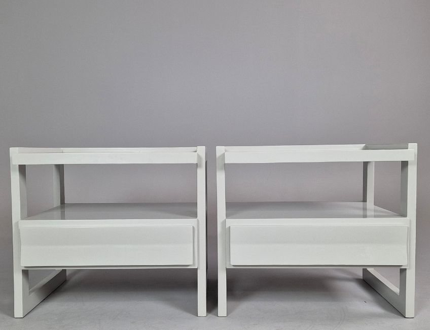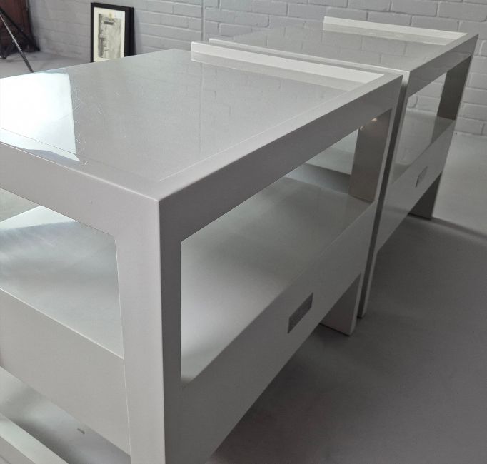 THE LACQUER COMPANY WIDE HUDSON NIGHTSTANDS, A PAIR. by Rita Konig, 71cm x 55cm x 63cm approx. (2).
