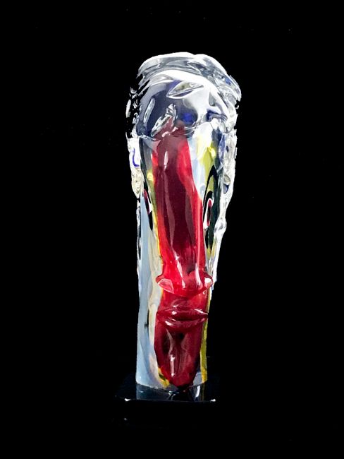 WALTER FURLAN (B.1931). TETE DE FEMME - APRES PICASSO (s.8768). (d) original glass sculpture c.1977, signed and titled by the artist in blue, red and yellow glass, signed by the artist beneath base, 37cm H x 21cm, weight, 9760g. (Subject to ARR – see Buyers Conditions).