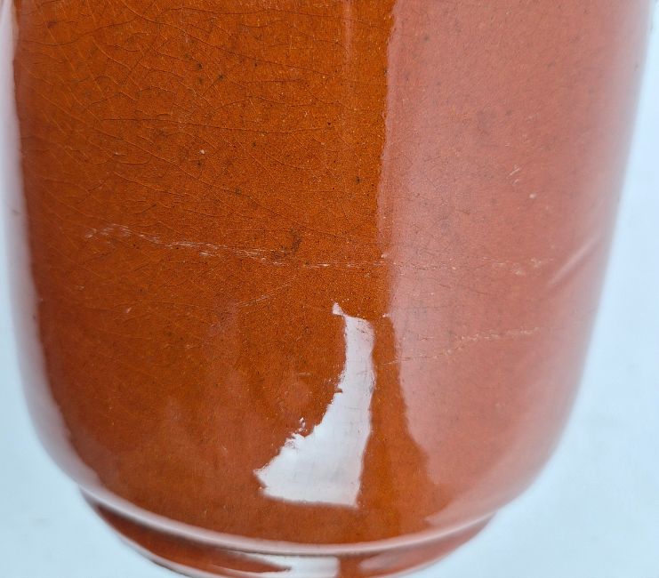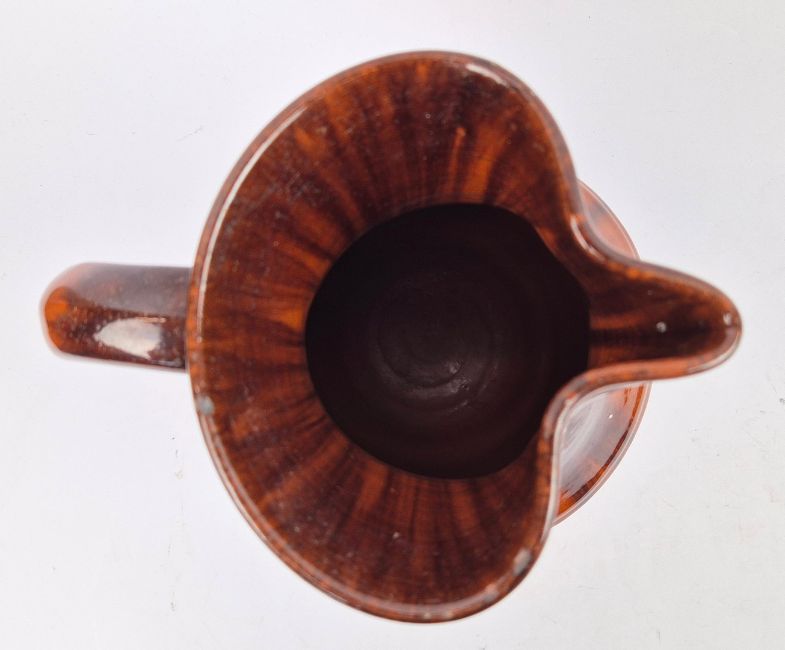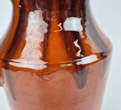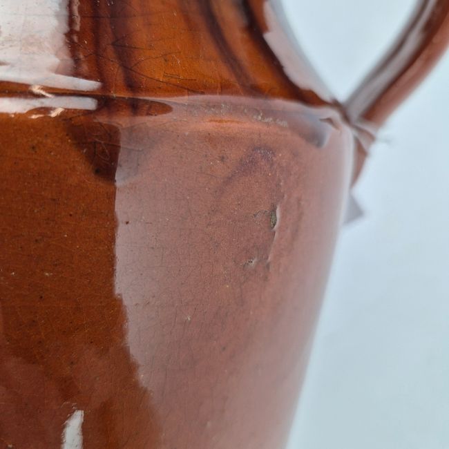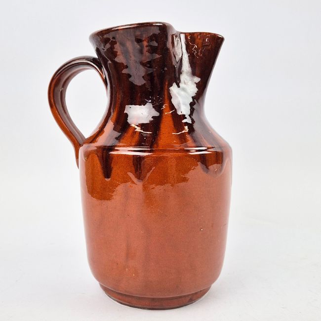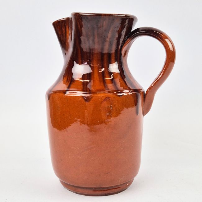 VALLAURIS. CRUCHE DE VIN. Orange brown glazed of style espagnol, 23cms high.
