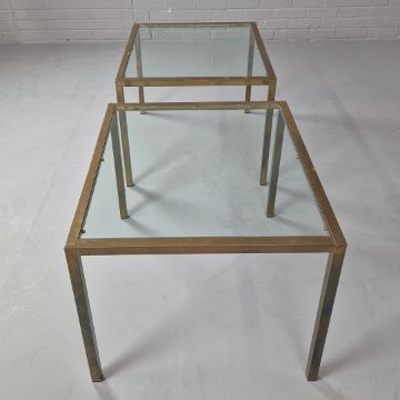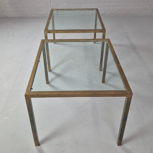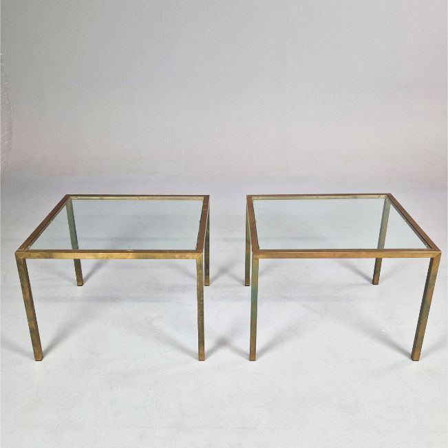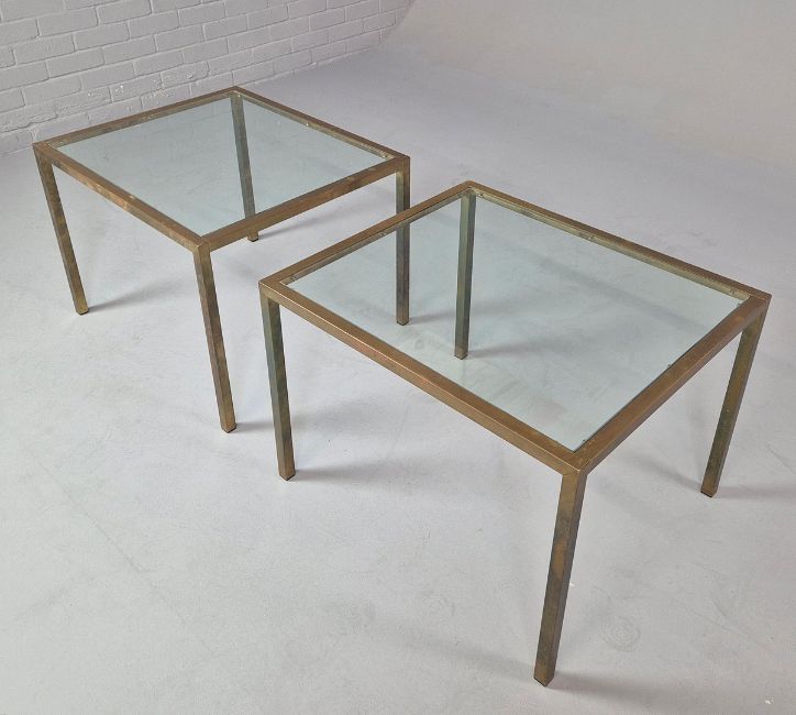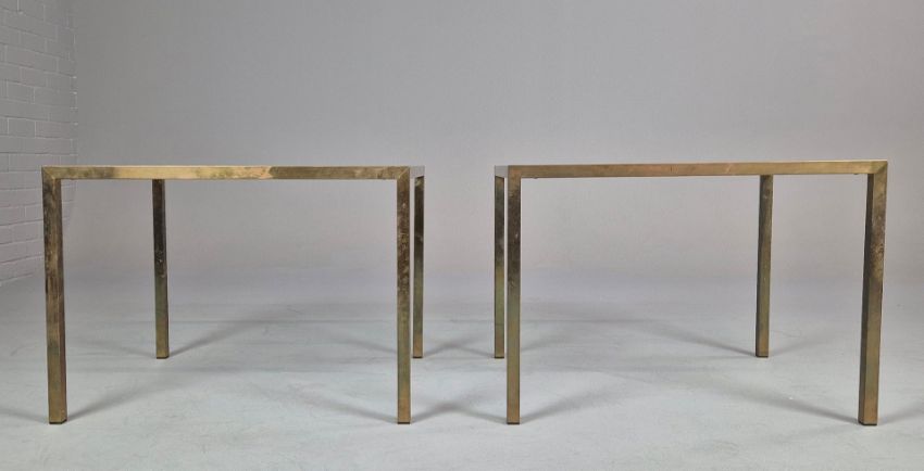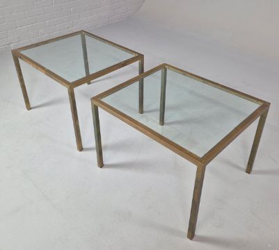 PURCHASED FROM HILLARY BATSTONE SIDE TABLES, A PAIR. vintage, 70cm x 60cm x 50cm approx. (2).