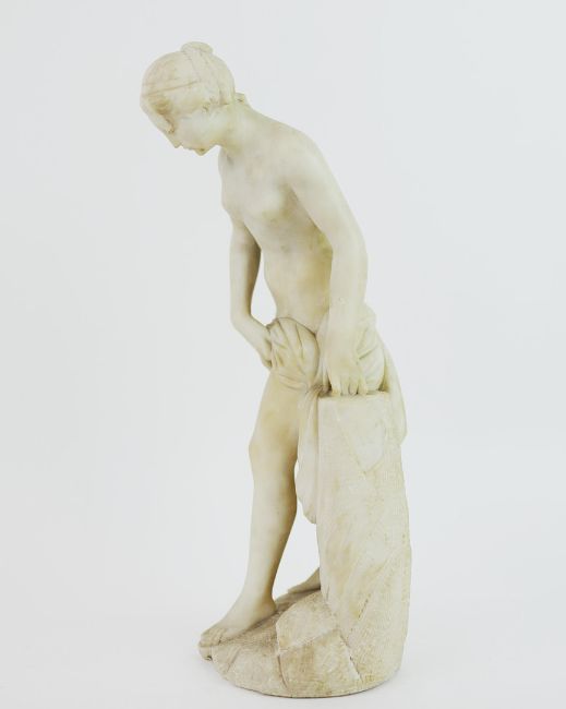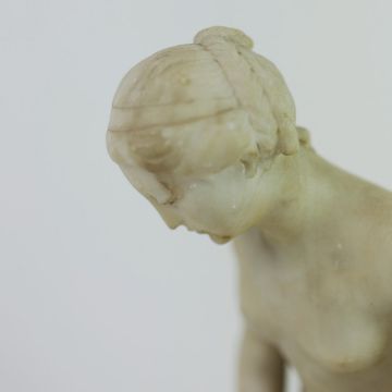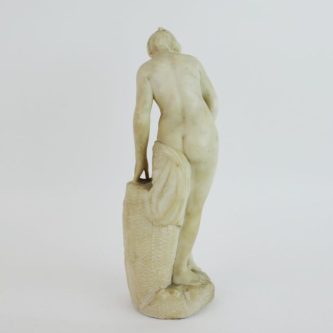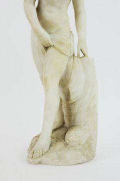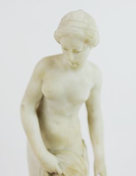 AFTER ÉTIENNE MAURICE FALCONET (FRENCH 1716-1791). A BATHER. alabaster, 41cm H.