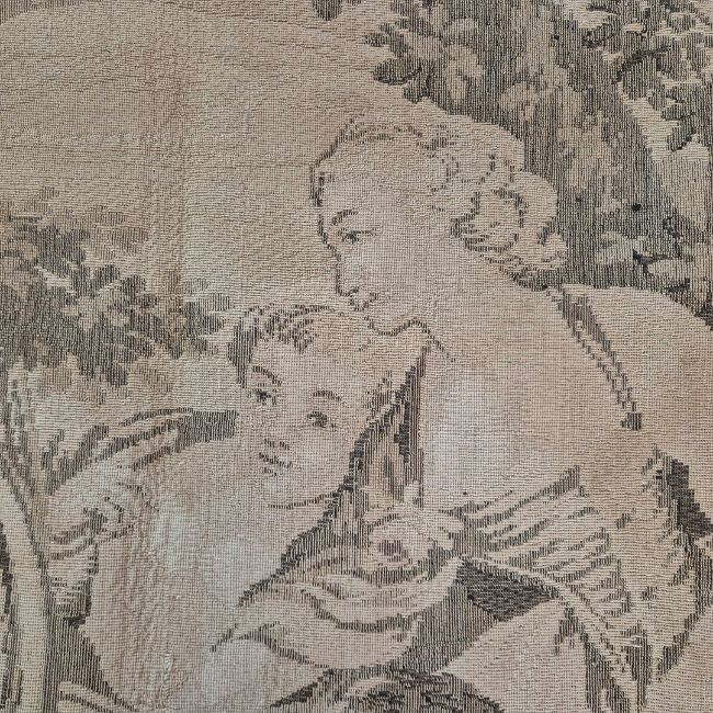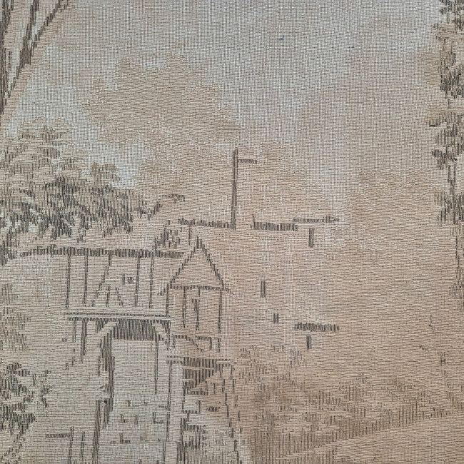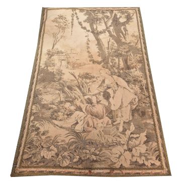 17TH CENTURY MANNER. PAYSAGE AVEC PERSONNAGES, RUISSEAU ET MOULIN. Tapestry in Gobelins Style, 190cms x 120cms.