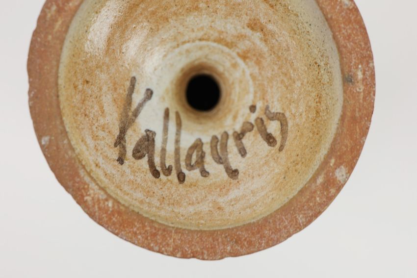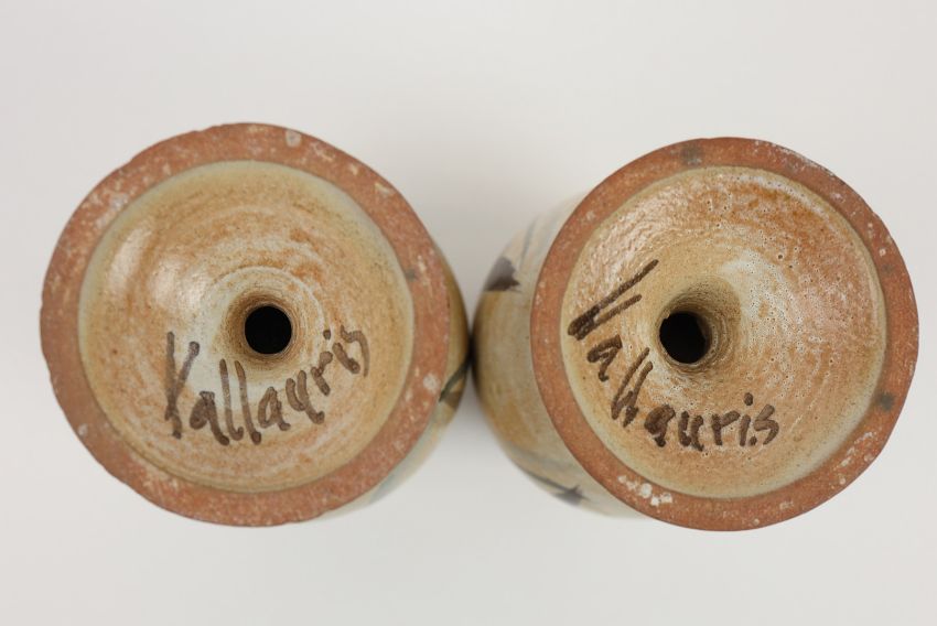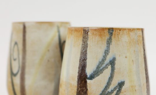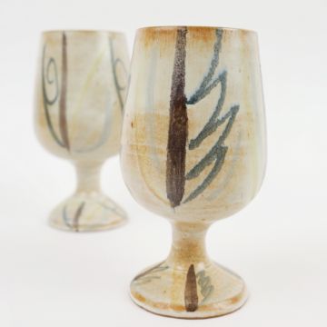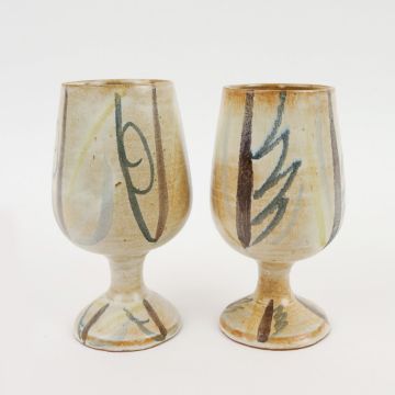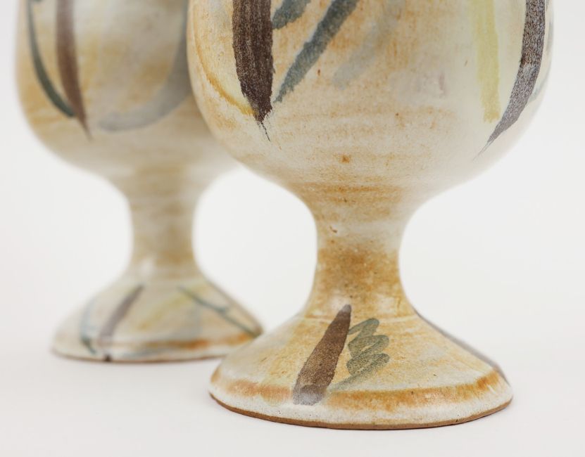 VALLAURIS. GOBELET. A pair, in naturalistic decorative glaze and decoration, 16cms High.