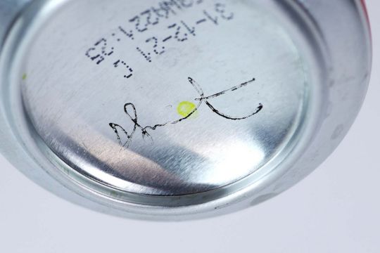 DAMIEN HIRST. COCA COLA CAN. (d) Aluminium can with contents in perspex case, Approx size Can: 11.5cms High, Case: 15cms Square, with signature to underside of can. (Subject to ARR – see Buyers Conditions).