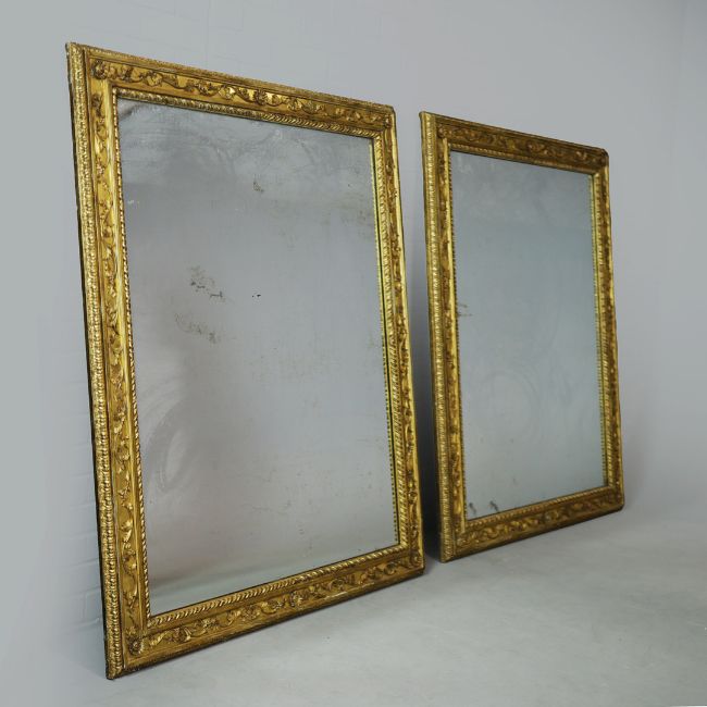 PAIR OF LATE 18TH/EARLY 19TH CENTURY VENETIAN GILTWOOD AND GESSO WALL MIRRORS (2). trailing leap decorated frames and rectangular plates, 144cm x 120cm.