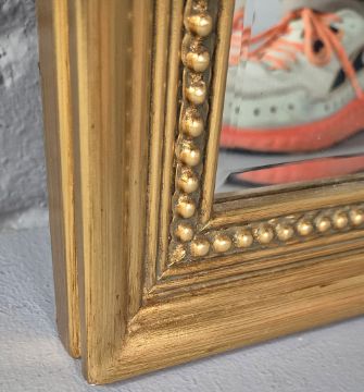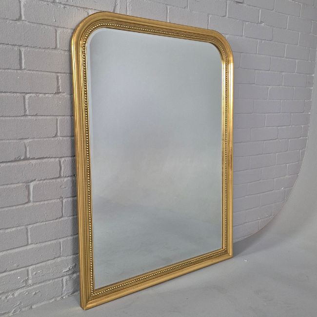 OVERMANTEL MIRROR. gilt frame and a bevelled plate 80cm w x 110cm t.