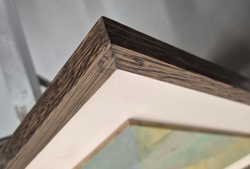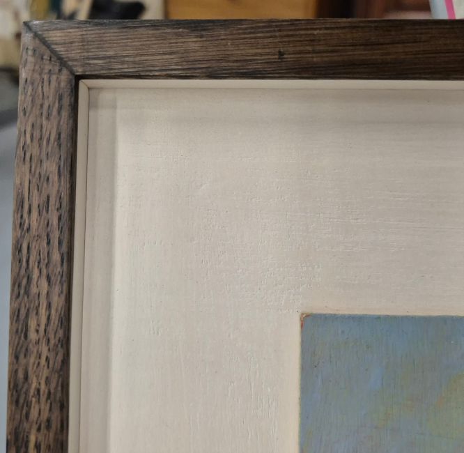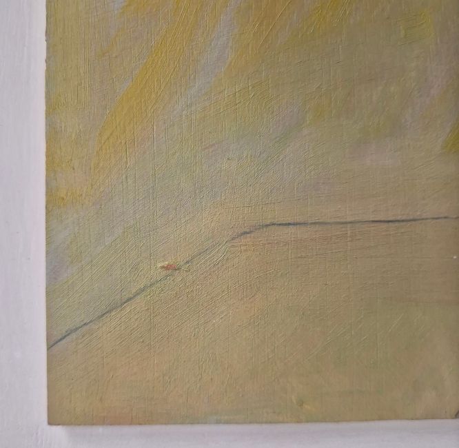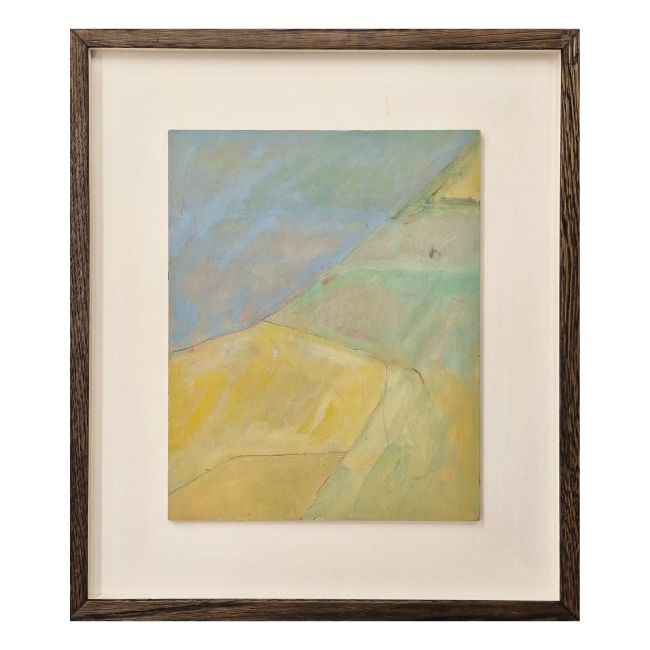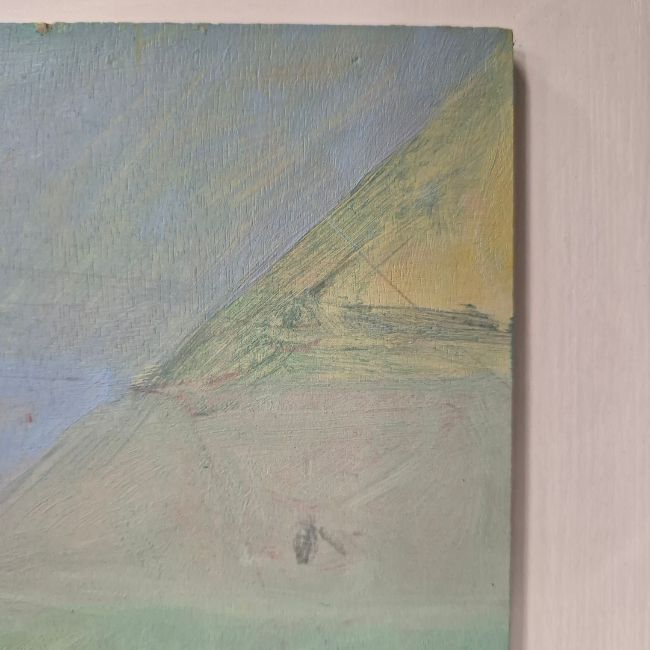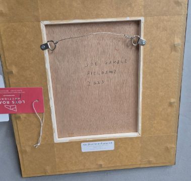 JOE GAMBLE. FIELDS #3. oil on wood, 38cm x 33cm, framed.