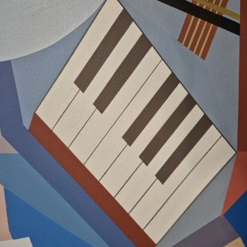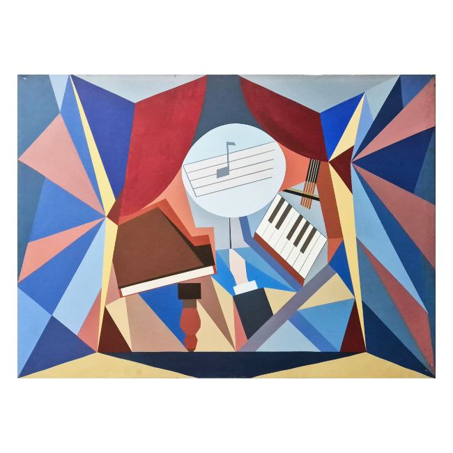 EDWIN AYRES (20TH CENTURY). MUSICAL ABSTRACT. oil on canvas, 122xm x 92cm.