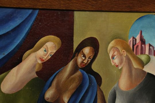 ARTHUR GILL PLEYDELL PEARCE (1917-2015). THREE GRACES. Oil on Board, 58cms x 45cms, signed, Framed.