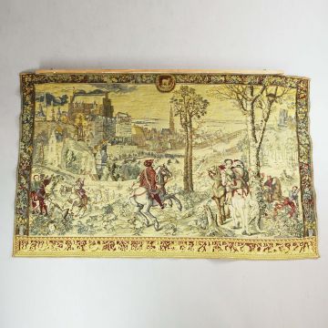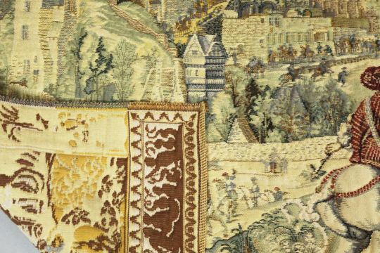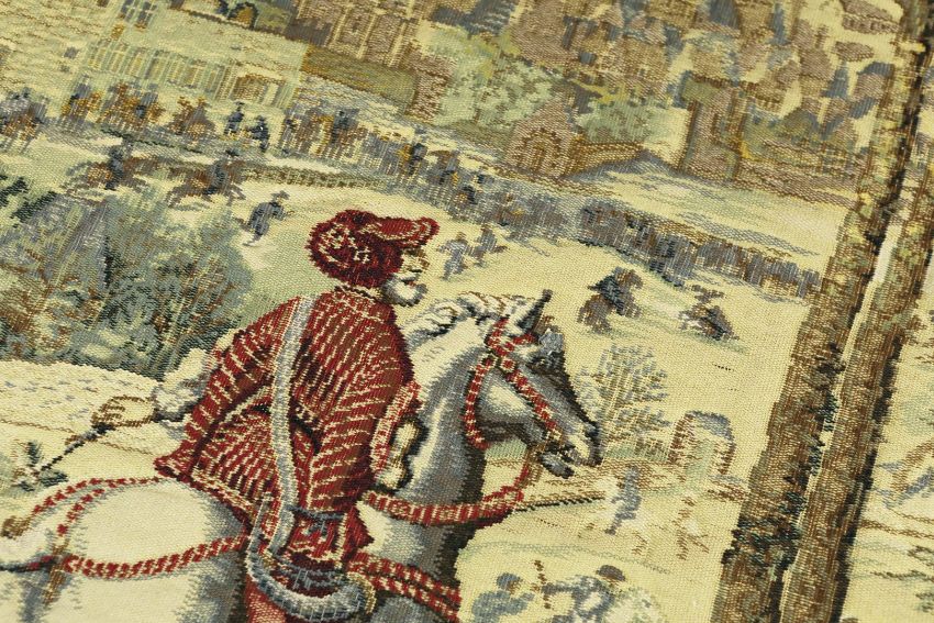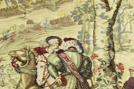WALL HANGING TAPESTRY. hints of Maximillian, machine made, 133cm H x 210cm W.