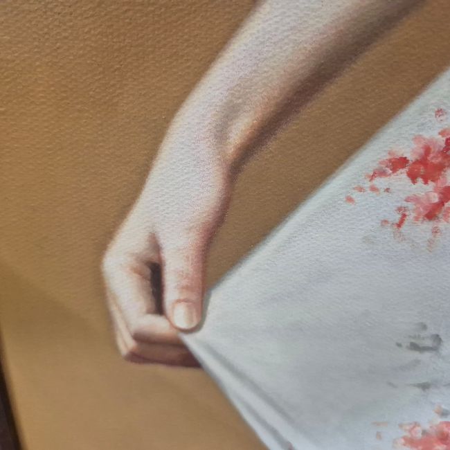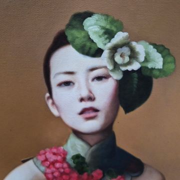 AFTER CHEN CHENGWEI. WHITE DRESS WITH FLORAL PATTERN. oil on canvas, framed, 68 x 58 cm.