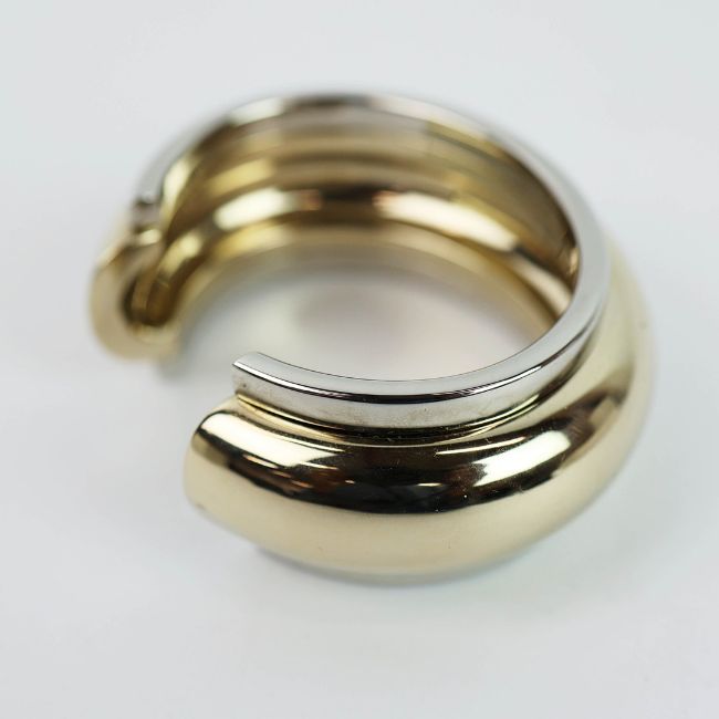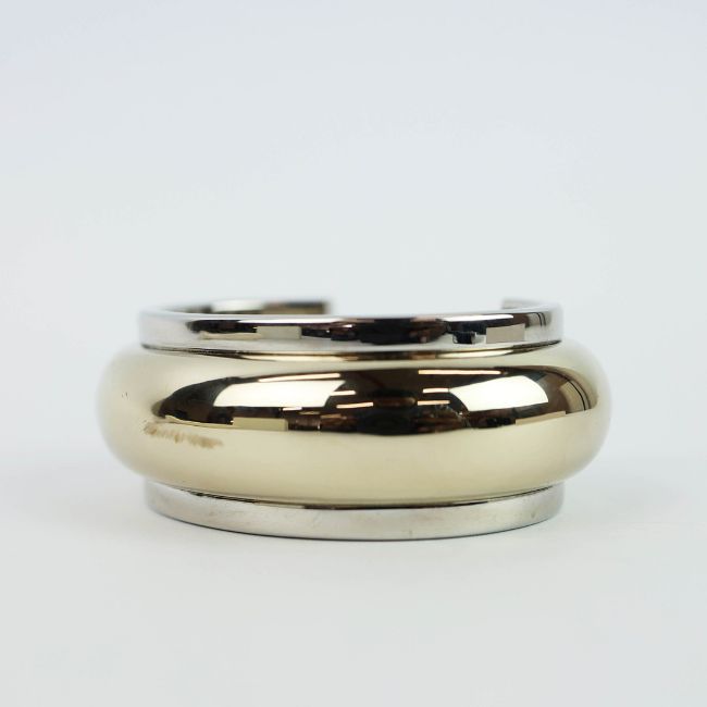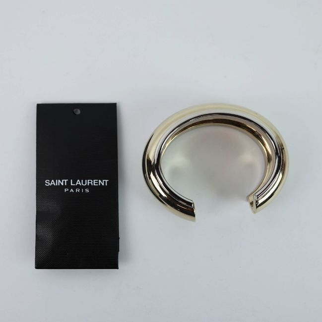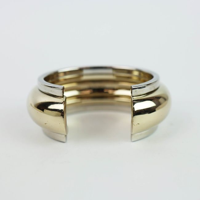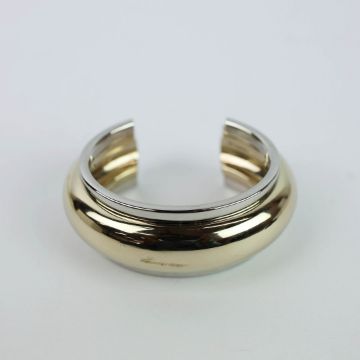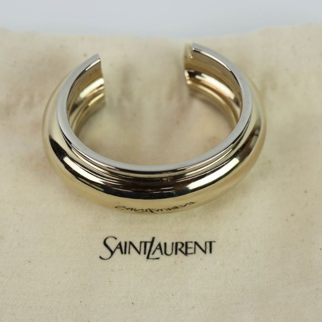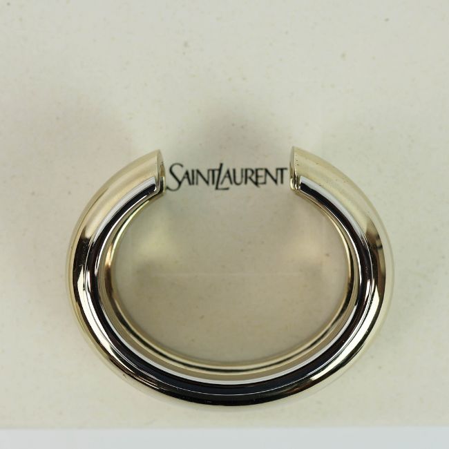 A SAINT LAURENT CHROME TWO TONE BANGLE. medium, 17cm wrist size, complete with pouch and box.
