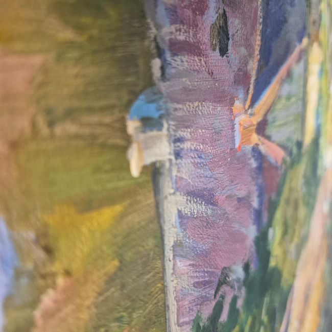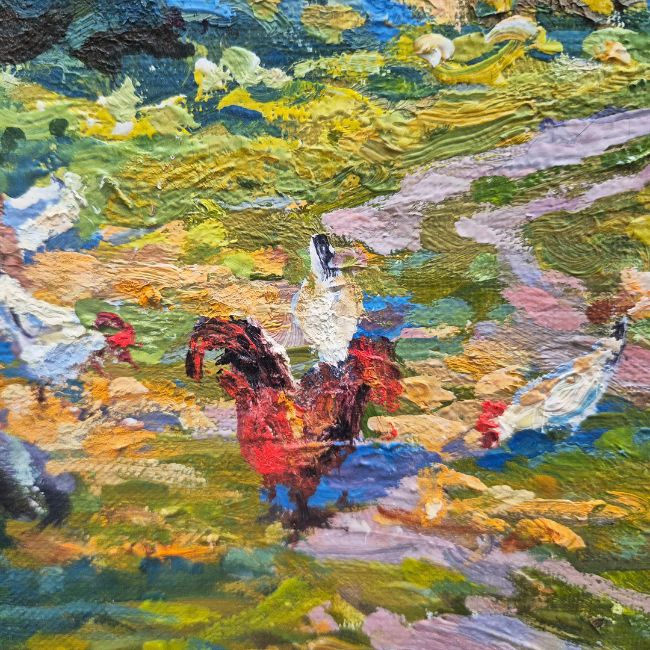 YULIYA PIVEN (UKRAINIAN). THE VILLAGE DAY. oil on canvas, 40cm x 60cm.