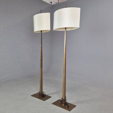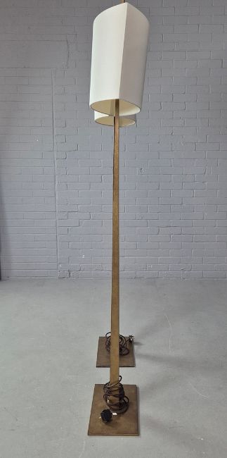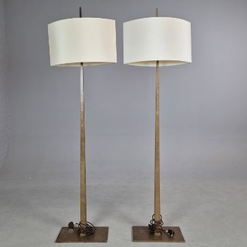 PORTA ROMANA TAPERING HARREL FLOOR LAMPS, A PAIR. with Porta Romana Shades, 190cm H approx. (2).