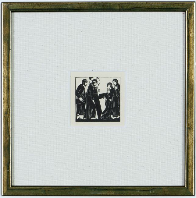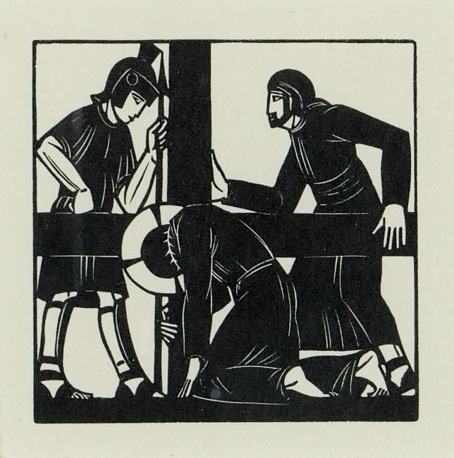 ERIC GILL. WAY OF THE CROSS. a set of fourteen original engravings, printed from the wood, Cleverdon edition 1929, 7cm x 7cm each, mounted in linen.